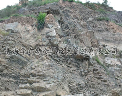 主動(dòng)防護(hù)網(wǎng)是以鋼絲繩網(wǎng)為主的各類柔性網(wǎng)覆蓋包裹在所需防護(hù)斜坡或巖石上,以限制坡面巖石土體的風(fēng)化剝落或破壞以及危巖崩塌(加固作用),或?qū)⒙涫刂朴?定范圍內(nèi)運(yùn)動(dòng)(圍護(hù)作用)。
